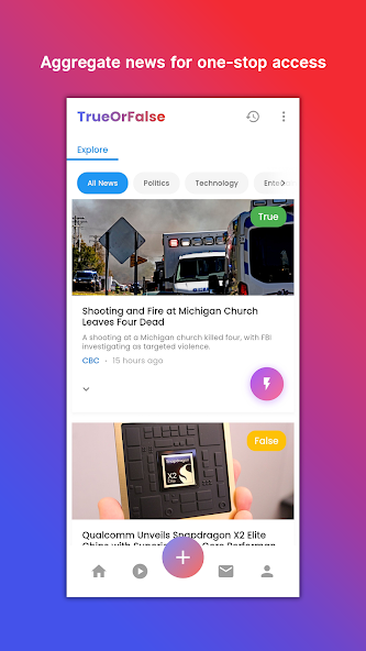 1) Open → tap Check → input or select an item to verify.2) View AI verdict + reason → save/share the moment.3) Follow the daily prompts/challenges to practice quick fact checks.